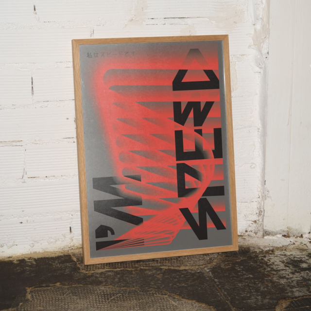 na plakacie napis I'M SPEED oraz czerwone pasy gradientów podkreślające szybkość z podpisem autora, numerem serii oraz tłoczeniem