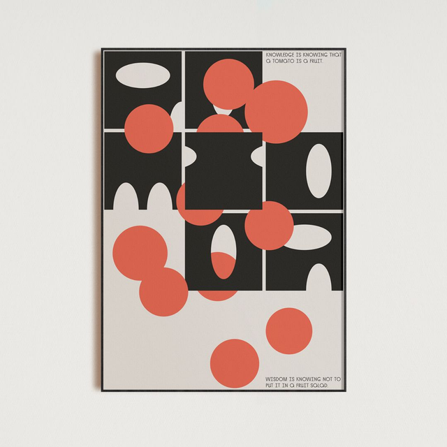 na plakacie napis POMIDOR wykonany autorskim krojem pisma z cytatem związanym z tym warzywem z podpisem autora, numerem serii oraz tłoczeniem